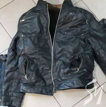 Був одягнутий: чорна шкіряна куртка на хутрі, реглан чорного кольору з білими смугами, блакитна сорочка, сині джинси, взуття чорного кольору.
