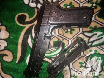 Під час проведення санкціонованого обшуку у чоловіка поліцейські виявили два пістолети з ознаками переробки та два десятки набоїв до стрілецької зброї різного калібру. Також чоловік зберігав рослинну речовину зеленого кольору, схожу на марихуану. Все виявлене правоохоронці вилучили та направили на експертизу.