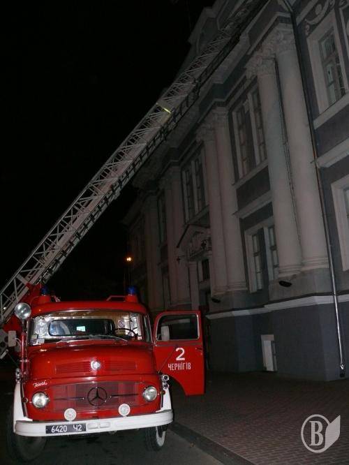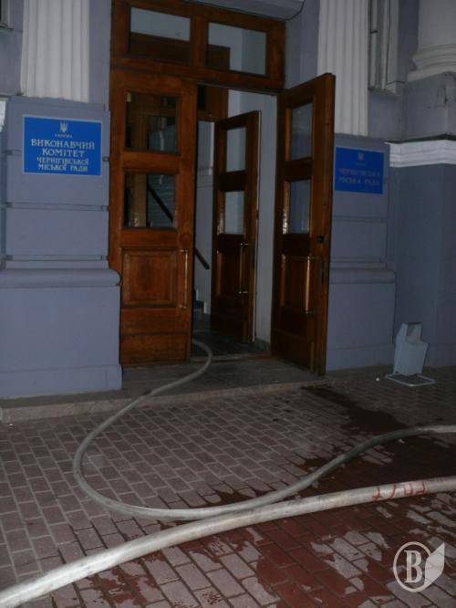 Вскоре к городскому совету Чернигова прибыло более пяти пожарных машин, в том числе и спецмашины с лестницей, которую опустили на крышу здания. Достаточно быстро пожар был локализован. Пострадавших нет.