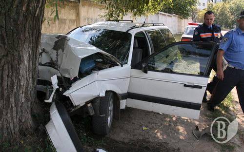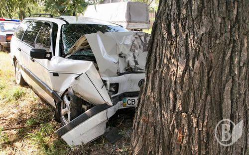 Сегодня в Чернигове по ул. Волковича случилось ДТП – водитель автомобиля Volkswagen Passat не справился с управлением, съехал с дороги и столкнулся с деревом.