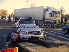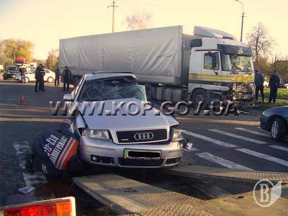 Столкновение грузовика"Мерседес"с легковиком"Ауди А6"случилось в Чернигове на перекрёстке улиц Кольцевая и 1 Мая вчера, 4 ноября в 13:10.