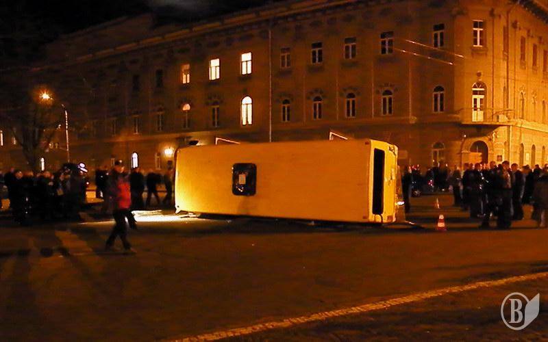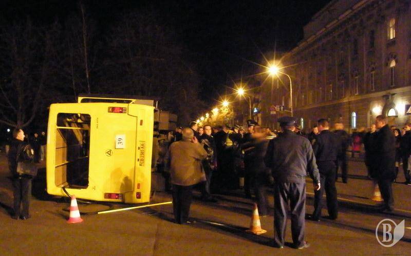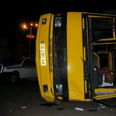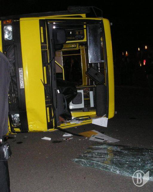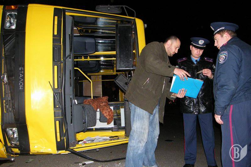 Перевернулся автобус в Чернигове. Фоторепортаж
