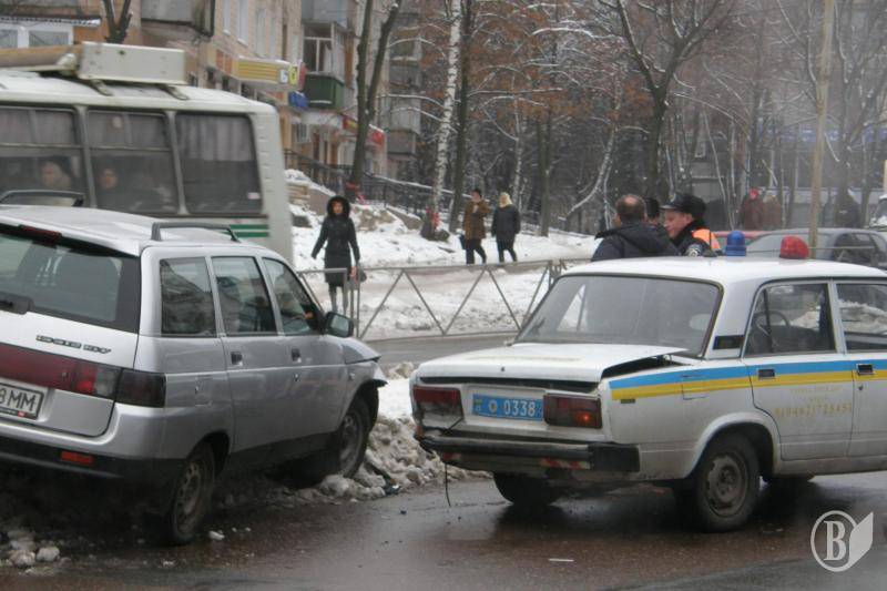 Службове авто наздогнав легковик ВАЗ. Пошкодження незначні.