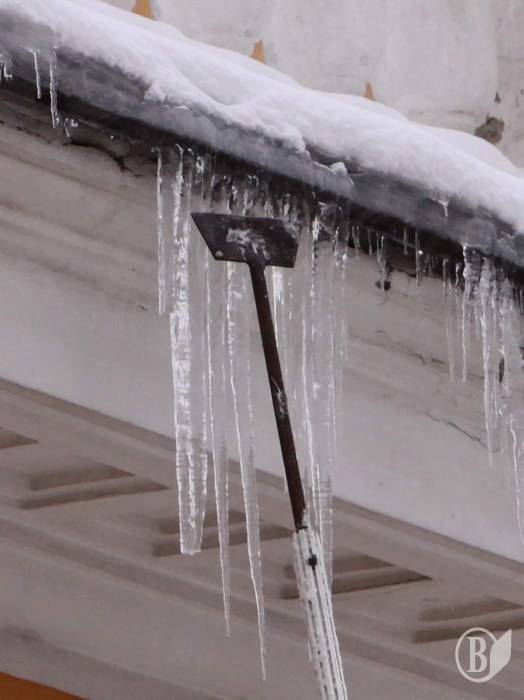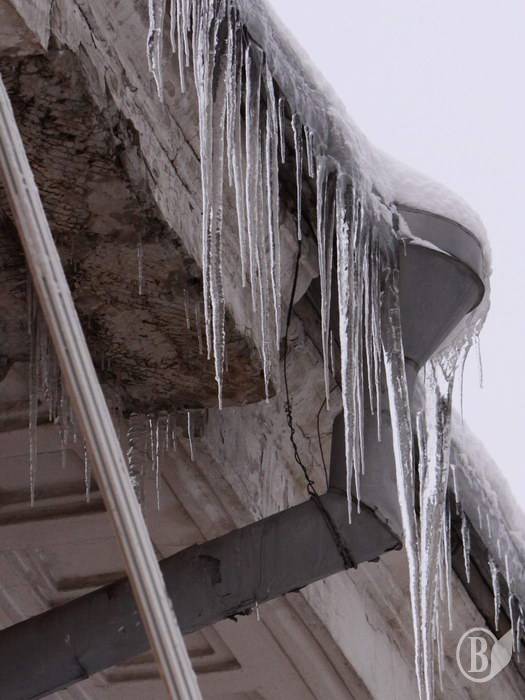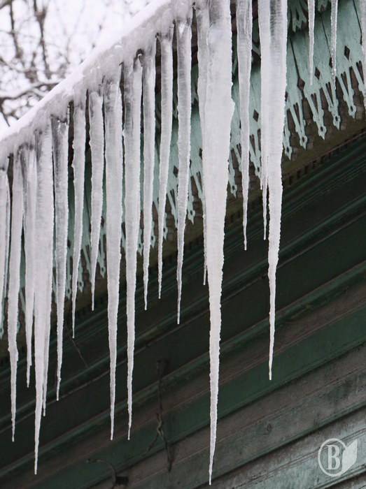 После мороза потеплело и на крышах домов появились сосульки, которые теперь нависают над головами прохожих.