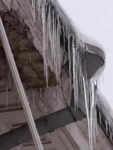 Кроме того, огромная масса снега, которая собирается зимой на крышах зданий, даёт большую нагрузку на конструкцию крыши, что может привести к повреждению кровельного покрытия. А это, в свою очередь, влечёт значительные расходы на последующий ремонт. Всё это возлагает особенную ответственность на владельцев зданий или на службы, которые отвечают за их безопасную эксплуатацию.