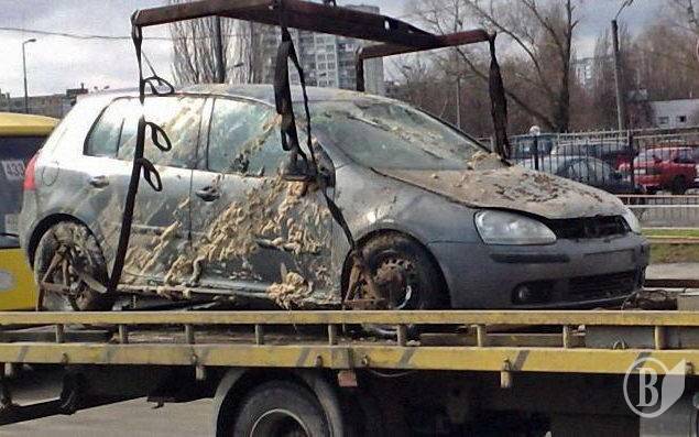 На Борщаговке, неподалёку от перекрёстка улиц Симиренко и Булгакова провалился под землю автомобиль.