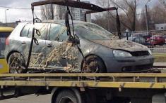 Чтобы спастись, водитель перелез на заднее сидение, выбил стекло и таким образом сумел вылезти на волю.