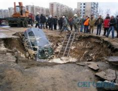 10.09.2008 Грузовик проваливается под асфальт. Фоторепортаж