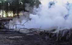 В одном из сараев хранилось сено для скота, который, к счастью хозяев, в это время была на пастбище. Скорее всего спичка или же окурок, брошенный поджигателем в сено, и привёл к пожару. Деревянные сооружения вспыхнули изнутри, словно порох.
