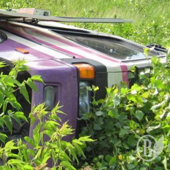 В результате сдвига почвы обочины автобус перевернулся в кювет на левый бок.
