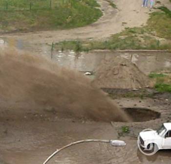 В среду 17 июня во дворе многоэтажки по улицы Сабурова, 5 было горячо в прямом смысле слова. Из-под земли бил ключом фонтан горячей воды.