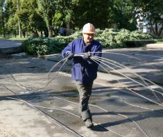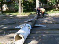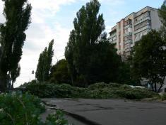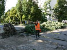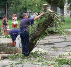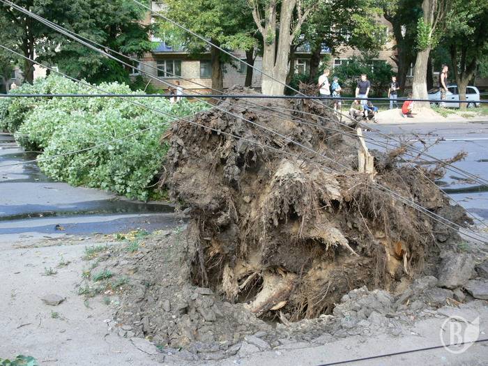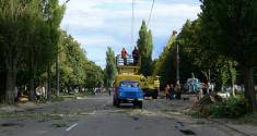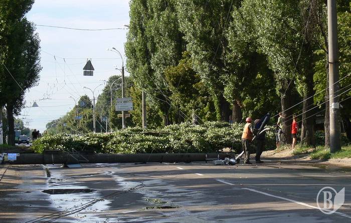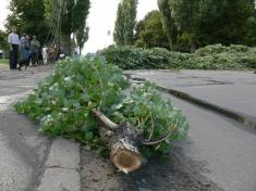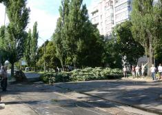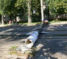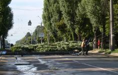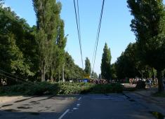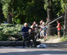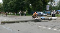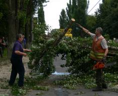 Работники МЧС уточняют, что порыв ветра свалил тополь, который упал на провода троллейбусной линии, после чего от на тяготения упал и столб, который стоял рядом.