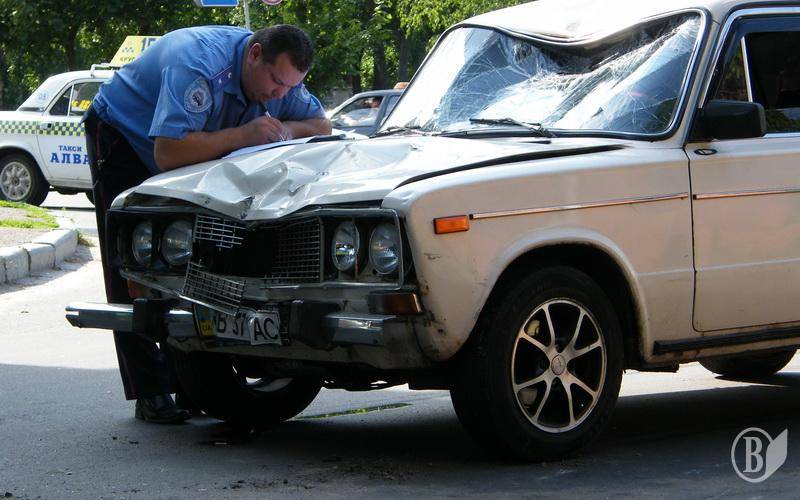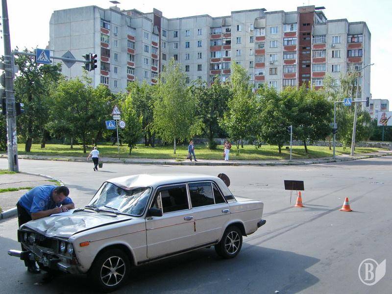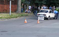 Автомобіль рухався по вул. Горького в сторону проспекту Перемоги. Висновки про його швидкість руху зроблять спеціалісти за довжиною гальмівного шляху. Сліди шин тягнуться більш ніж на 15 метрів.