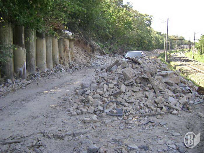 Экскаватор проводил работы для расширения участка под строительство гаражей. Из-за строительных работ станция Киев-Жовтневый и другие сооружения вблизи нее фактически очутились над бездной, которая возникла в результате подкопа экскаватором земляной насыпи