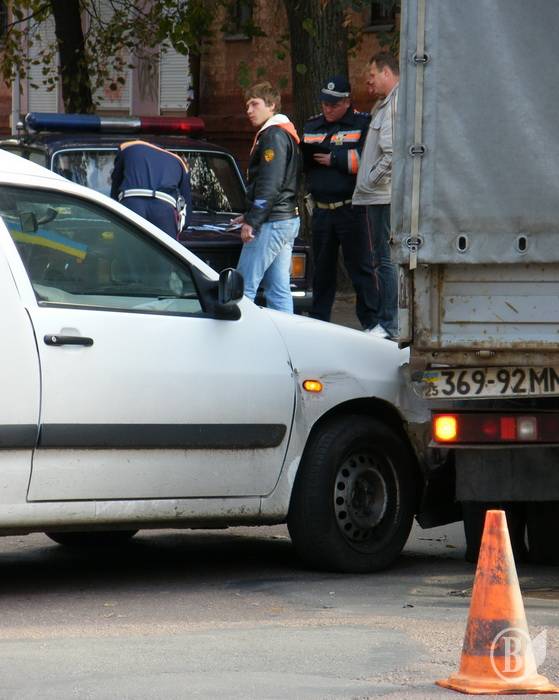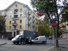Только что в Чернигове на перекрёстке улиц Горького и Гетмана Полуботка случилось столкновение грузового автомобиля «Газель» и фургона SEAT INCA.