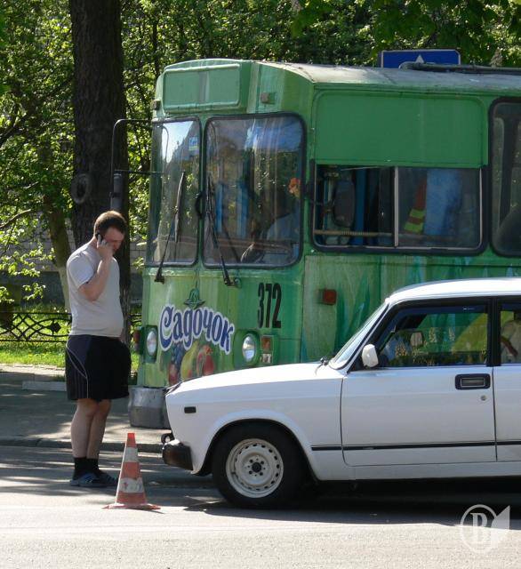 Сегодня около 16.00 на пересечении улиц Магистратская и Кирпоноса в Чернигове случилось столкновение троллейбуса маршрута №1 с автомобилем"Жигули".