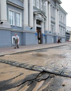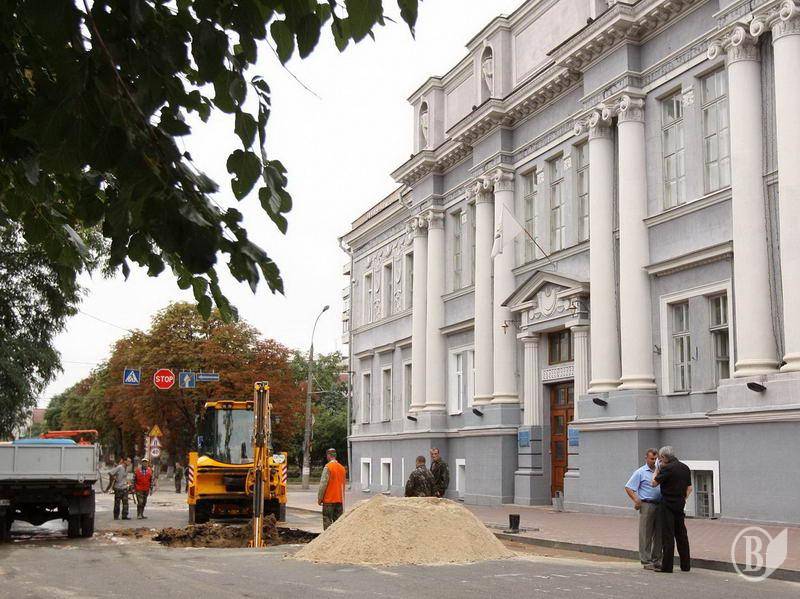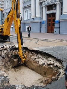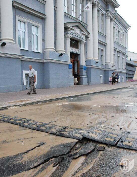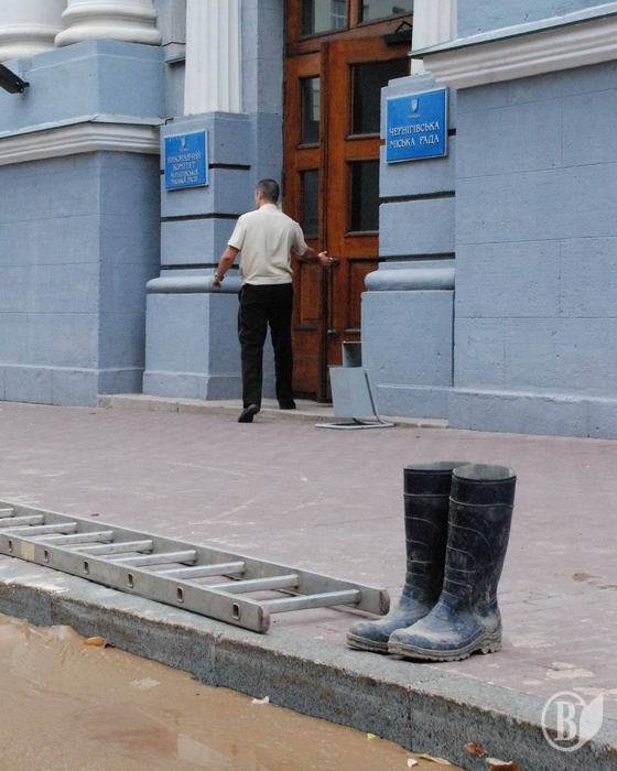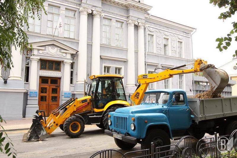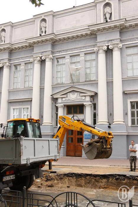 Не везёт нашему Черниговскому горсовету. То пожар на чердаке, то дымком от мусорки подкоптит. А сегодня – своеобразный карьер перед самым парадным входом.
