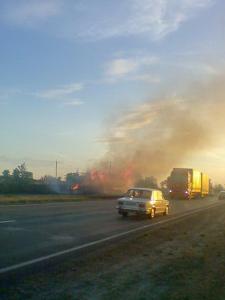 6.08.2007 Фура згоріла з водієм на трасі. ФОТОрепортаж