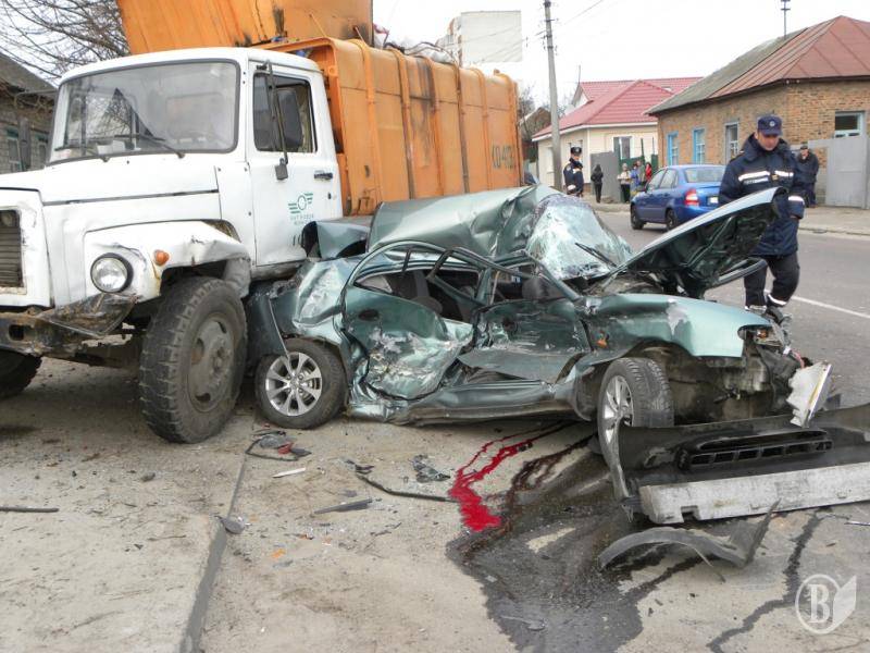 За попередніми даними, 52-річний водій автомобіля Хюндай Акцент під час обгону не впорався з керуванням і зіштовхнувся з вантажівкою Вольво, а від неї влетів у сміттєвоз ГАЗ.