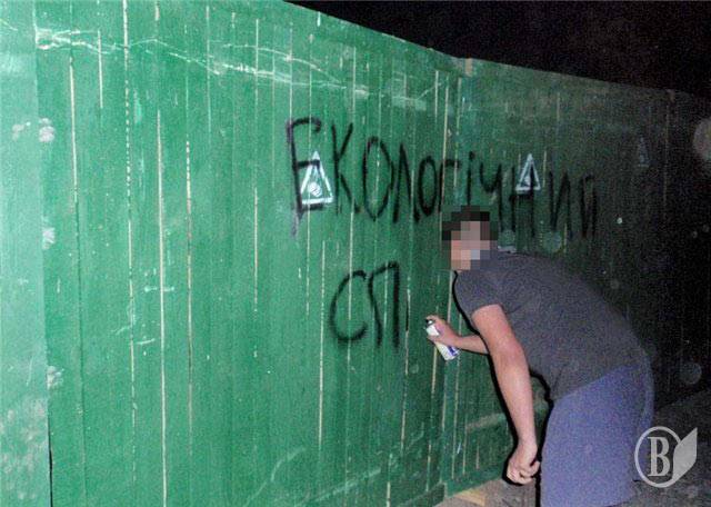 Невідомі екологічні активісти-радикали у Чернігові здійснили напад у ніч з 11-го на 12-е червня на об`єкт незаконної забудови на перехресті вулиці П’ятницької та проспекту Перемоги.