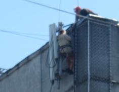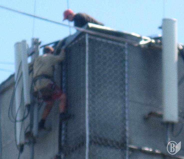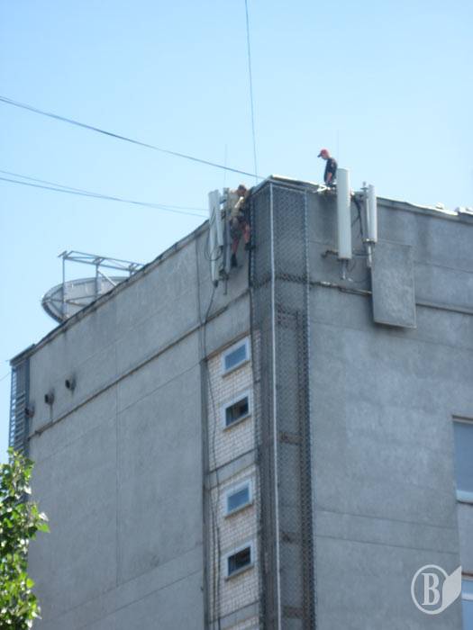 Він пояснив, що над встановленням антен мобільного зв’язку працюють люди без страховки, а внизу це спостерігають кілька десятків пар очей чернігівців. Охають та ахають, коли камікадзе на стіні робить якийсь необережний крок і мало не зривається.