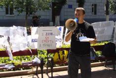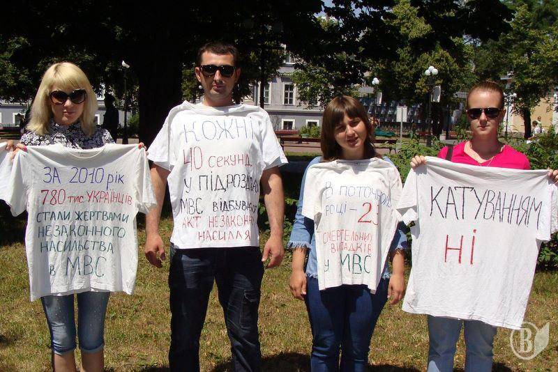 Вони продемонстрували працівникам прокуратури, а також усім перехожим виставку знарядь катувань, якими користуються в українській міліції. Виставка приурочена до Міжнародного дня вшанування жертв катувань 26-го червня.