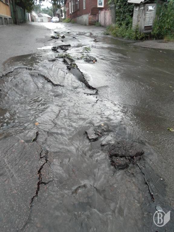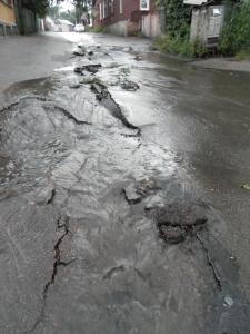 Кілька років тому в одну з післядощових вирв завалився мікроавтобус, ну а скільки побито ресор і валів – відомо тільки водіям невдахам. Регулярні «латання» асфальту результат дають тимчасовий. Воно й зрозуміло – окрім старої, доброї бруківки такого натиску води не витримає жодне покриття