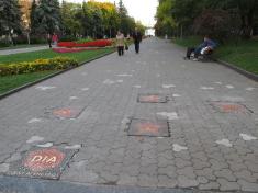 Однак я – не з «героїв» за гроші. А хто уже замовив таке – їх плити навіть не врізали в покриття алеї. Просто вложили, затрамбувавши чим попало зайве місце від вийнятої бруківки…