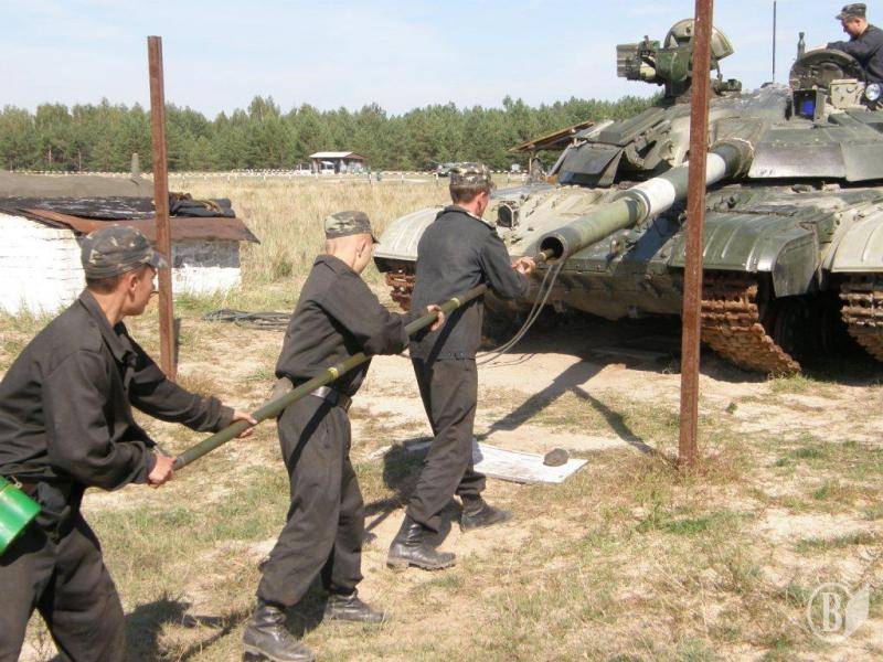 Танкісти в чорних комбінезонах завзято працювали на своїй штатній техніці.