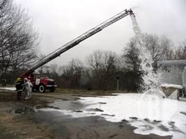 Гасіння ємностей з пальним здійснювалось двома пінними стволами за допомогою пожежної автодрабини.