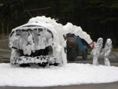 На місце умовної надзвичайної події прибула пожежна команда ДО "Айстра" та за підвищеним номером виклику 7 одиниць основної та спеціальної техніки підрозділів Територіального управління МНС. Пінними стволами рятувальники загасили палаючий бензовоз та розлиті нафтопродукти, подали воду на охолодження технологічного обладнання автоналиву й поруч розташованого бензовозу.