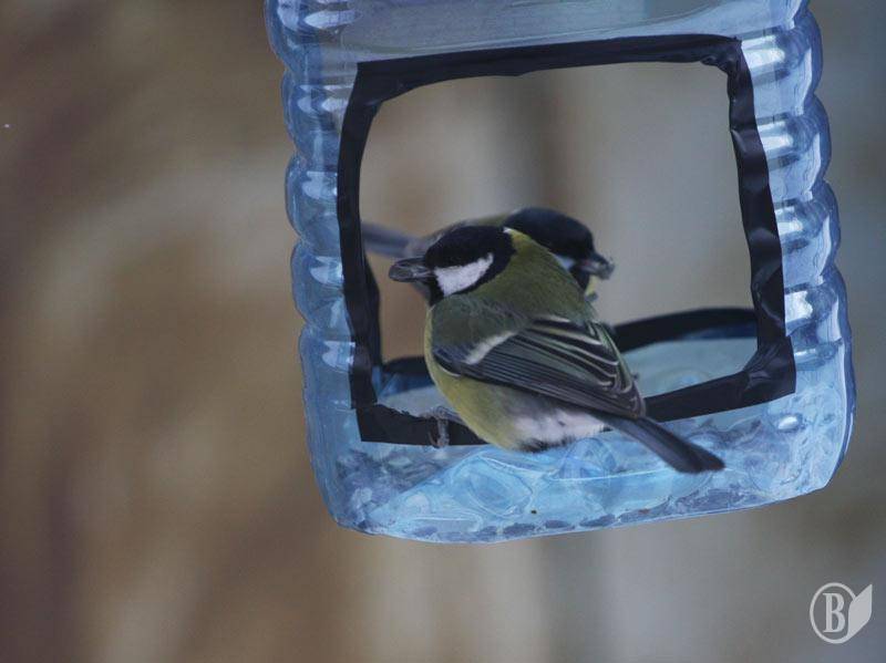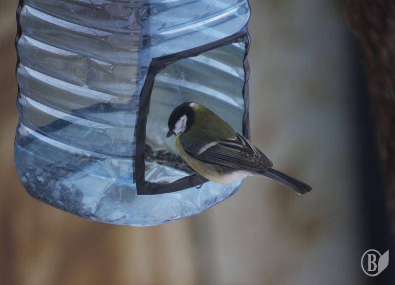 Годівниця, знайдена і зроблена за 20 хвилин, служитиме до весни. Один із її недоліків у тому, що вона має велику парусність і сильно гойдається на вітрі. Це має і плюс – не дає довго засиджуватися безцеремонним горобцям, які люблять умощуватися в насіння і одноосібно їсти.