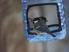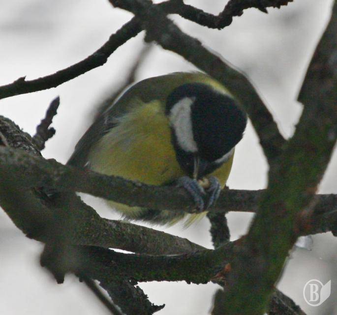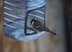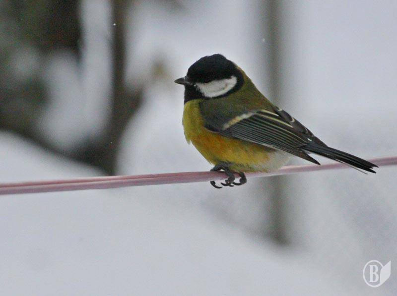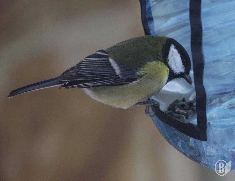 А ось синиця звичайна і горобці не соромилися. Мороз і вітер змушували їх не витрачати енергії на безрезультатний пошук їжі.