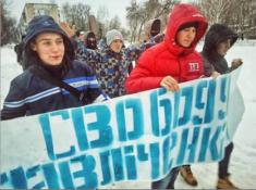 Близько півсотні молодих людей пройшли ходою протесту від пам’ятника Воїнам-афганцям до пам’ятника Леніну, на площі Леніна. Деякий час вони під вікнами виконкому вигукували лозунги. Потім трохи покидали сніжками по вождю революції і розійшлися.