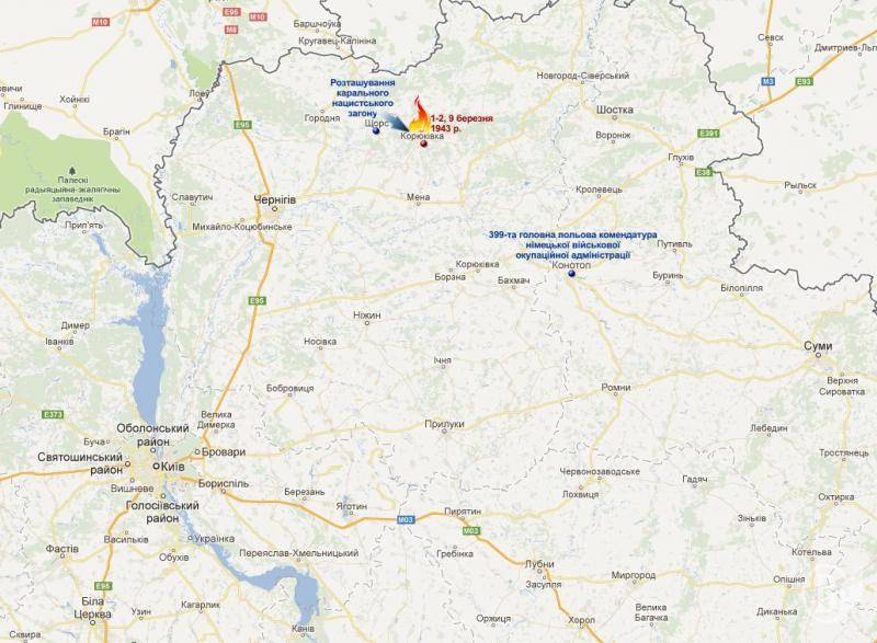 Як відомо, 1 березня 1943 року нацистський каральний загін із міста Щорс прибув до селища міського типу Корюківка. Містечко було оточено. Всіх мешканців групами по 50–100 чол. зганяли у великі будинки і розстрілювали.