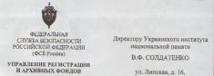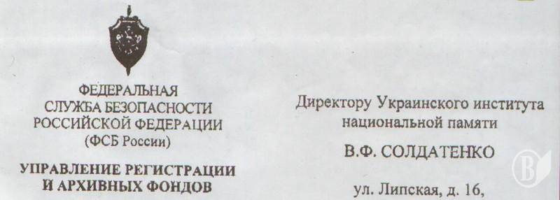 Надалі керівництво УІНП офіційно звернулося із запитом до директора ФСБ РФ, генерала армії Олександра Бортнікова. І ось, 28 грудня 2012 року, до УІНП надійшла відповідь, підписана згаданим генералом В.Христофоровим.