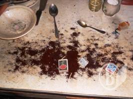 На кухні поміж столом і газовою плитою вони знайшли тіло 46-річного знайомого постраждалого чоловіка.