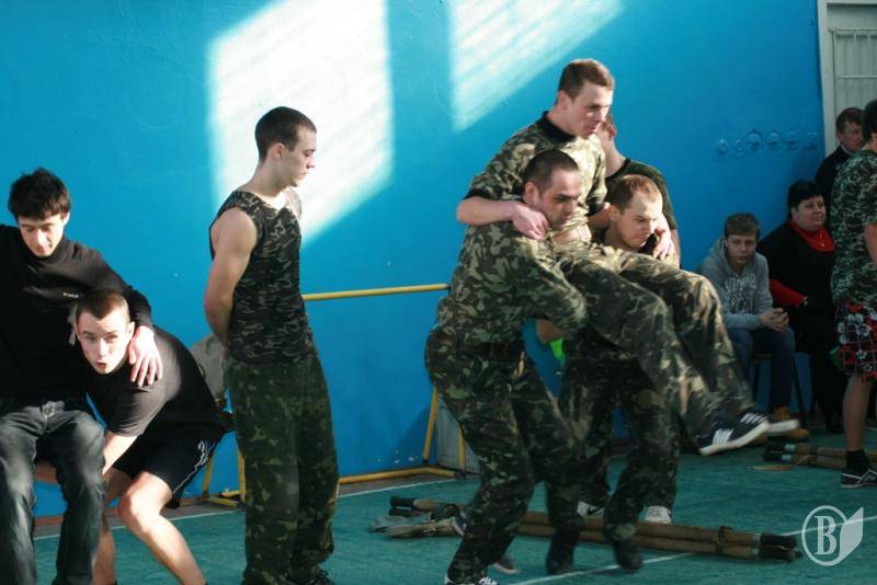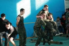 Безумовно, всі хлопці, військові й школярі, намагалися показати найкращі результати. Під скандування вболівальників, на перекладині й з гирею, віджимаючись на руках від підлоги і під час долання перешкод військової естафети вони напружували свої м’язи до тремтіння, викладалися до кінця.