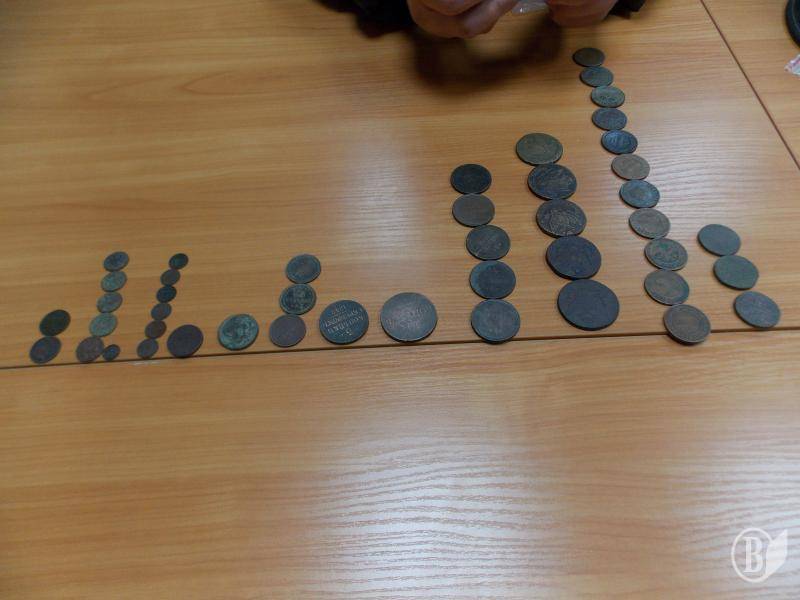 Під час проведення цього огляду прикордонним нарядом спільно з інспектором митниці в спортивній сумці з особистими речами водія, яка знаходилась на задньому сидінні, виявлено 185 монет розфасованих у поліетиленові пакети.