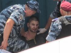 - Его впятером к приезду «Беркуту» едва держали, такое у него было состояние. Уже до задержанию у него была рассечена щека, сбиты кулаки, локти и колени. Сам он был без обуви. Обычная скорая его забирать отказалась, вызывали «10-ту бригаду», - добавляют очевидцы.