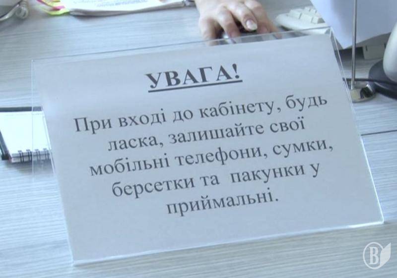 «Внимание! При входе в кабинет, пожалуйста, оставляйте свои мобильные телефоны, сумки, берсетки и пакеты в приемной».