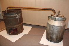 Эдуард Гребенюк продемонстрировал журналистам изъятый на точке самогонный аппарат, чтобы представители масс-медиа собственными глазами могли увидеть, в каких антисанитарных условиях изготовляется самогон.