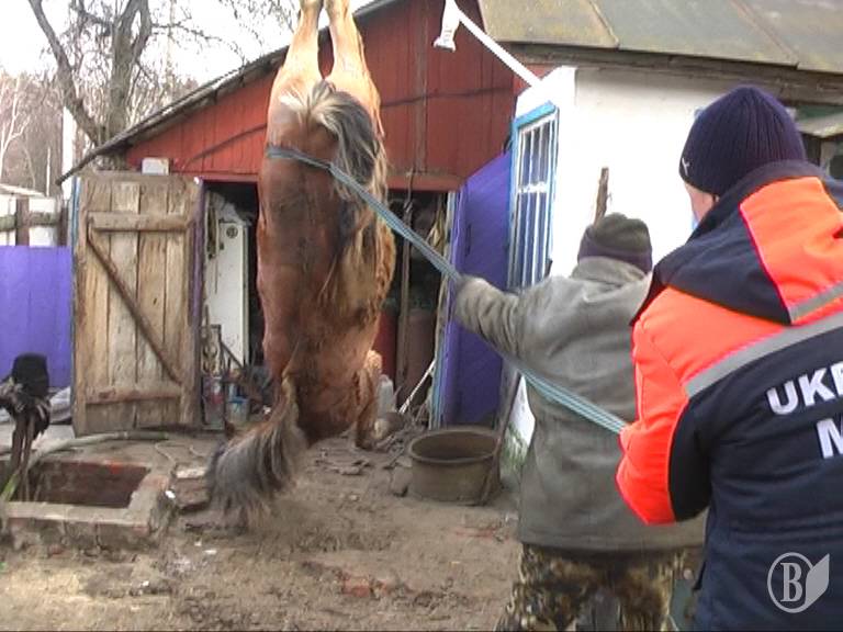 Конь упал в колодезную шахту 3 декабря в 12:00 на частном дворе в с.Анисов Черниговского района.