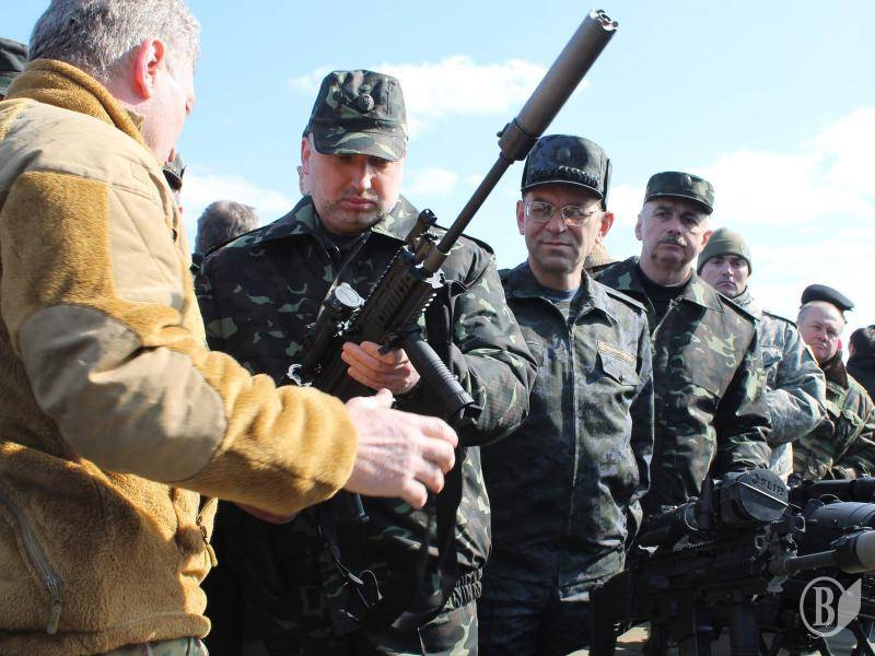Виконуючий обов’язки Президента України на полігоні навчального центру ознайомився з бойовими можливостями української зброї, перспективними зразками, що планується передати на озброєння Збройних Сил України: стрілецькою зброєю, засобами захисту, зв’язку, амуніцією тощо. Також відбулися вправи з метою перевірки бойових та ходових можливостей військової техніки.
