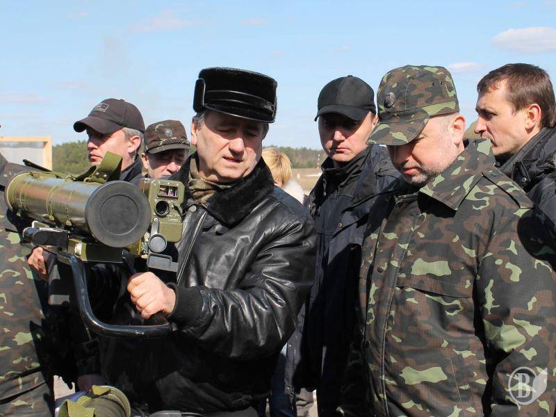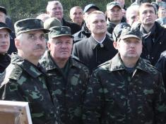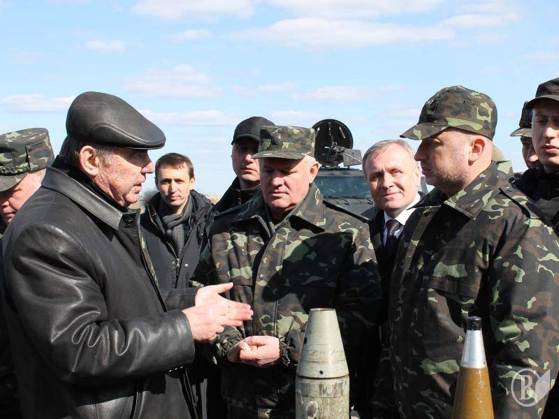 Олександра Турчинова супроводжували тимчасово виконуючий обов’язки Глави Адміністрації Президента України Сергій Пашинський, виконуючий обов’язки Міністра оборони України генерал-полковник Михайло Коваль, начальник Генерального штабу – Головнокомандувач Збройних Сил України генерал-лейтенант Михайло Куцин, тимчасово виконуючий обов’язки командувача Сухопутних військ Збройних Сил України генерал-лейтенант Анатолій Пушняков.