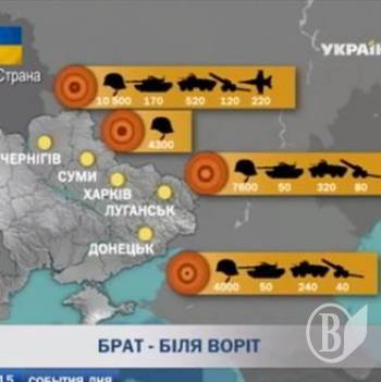 Напротив Чернигова американские эксперты насчитали 10 500 солдат, 220 самолетов и вертолетов, 170 танков, 520 БТР и 120 орудий.