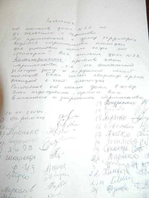 Головна вимога: заборонити незаконне будівництво, адже це знищить зелену зону та порушить спокій мешканців п’ятиповерхівки. Вікна більшості квартир першого під’їзду виходять на цей майданчик.