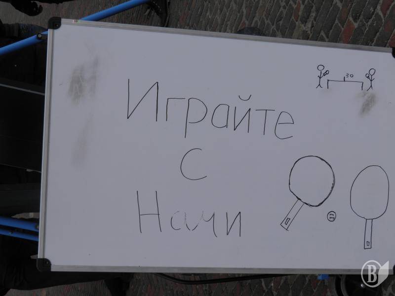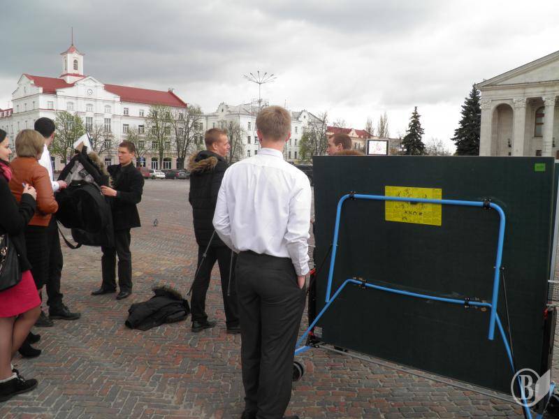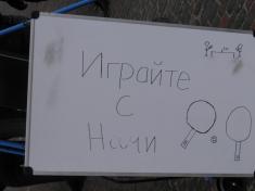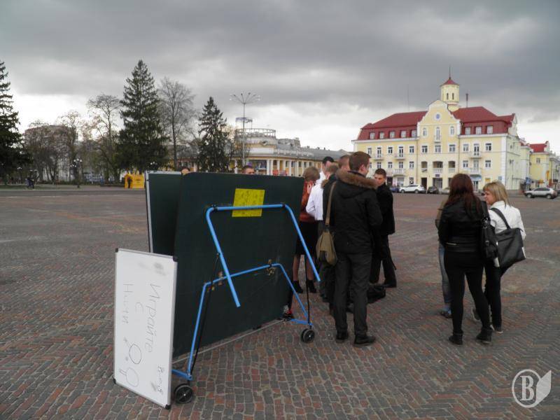 Близько десятка хлопців сьогодні (16 квітня) ввечері у самому центрі Чернігова – на Красній площі намагалися провести своєрідний флеш-моб: посеред площі встановили стіл для гри в настільний теніс, а піснями під гітару та плакатами закликали долучатися до акції і чернігівців. Як виявилося, молодь – це церковні місіонери «Гаррі Поттер».
