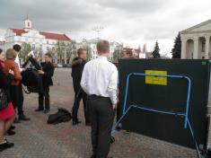 Принаймні вони самі себе так назвали. Та і на бейджах щось таке було написано. Але «не довго музика грала»… До «Гаррі Поттерів» підійшло двоє міліціянтів і коректно попросили зібрати «манатки» і звільнити площу.