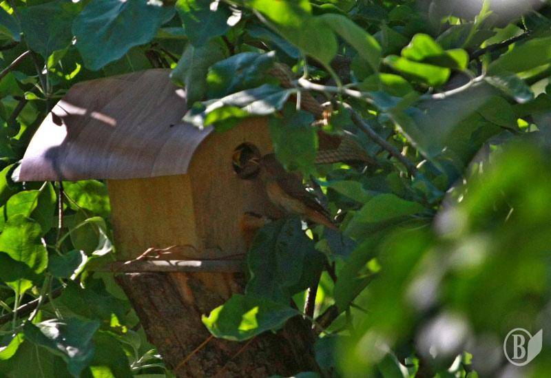 Поки що горихвістки годують пташенят. Більш затримується біля гнізда – мати сімейства. Оглядає його, навіть наполовину засовує голову в житло. До речі, пишуть, що горихвістки селяться у відкритих гніздах. Мої ж - вважають , що головне не дах над головою був, а любов у подружжі.